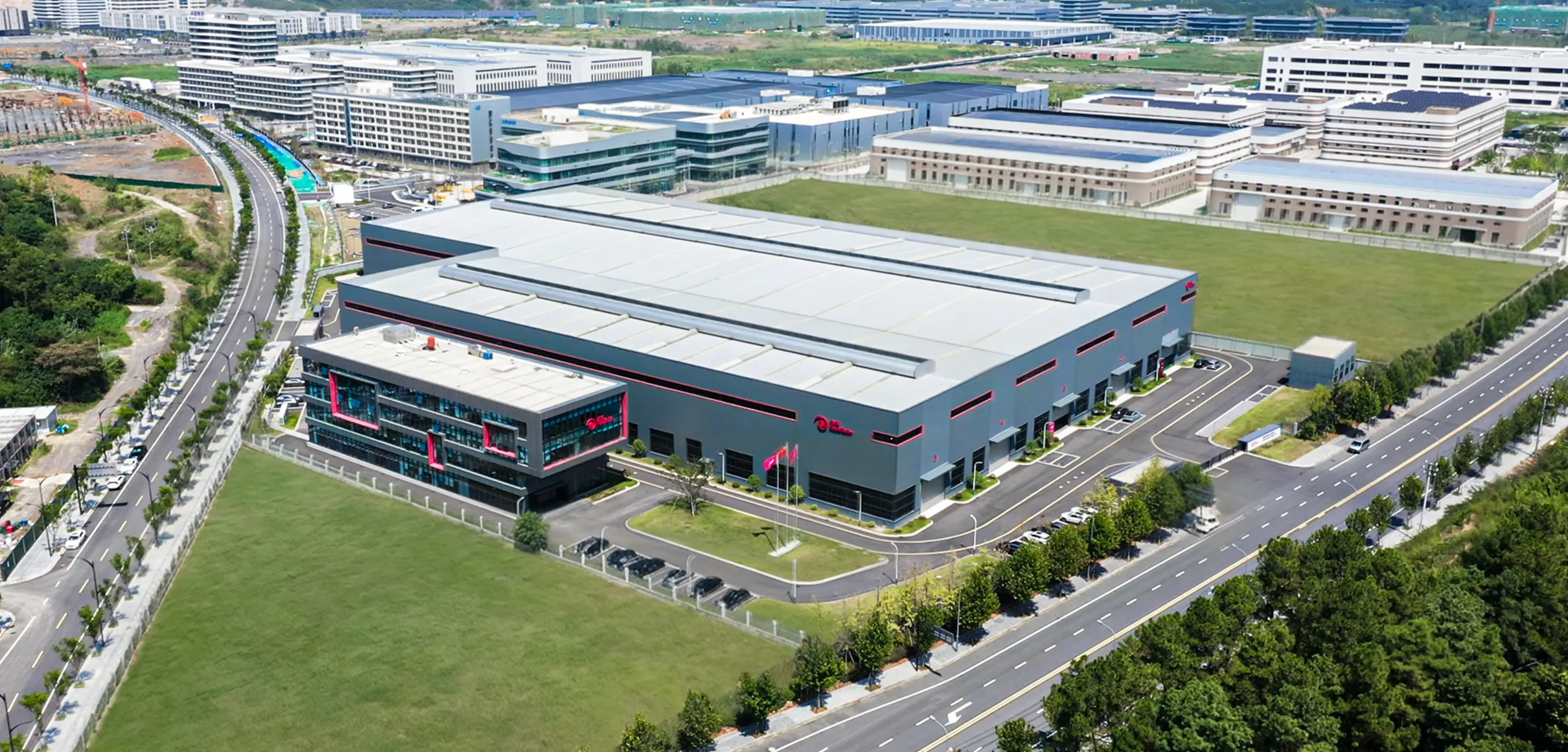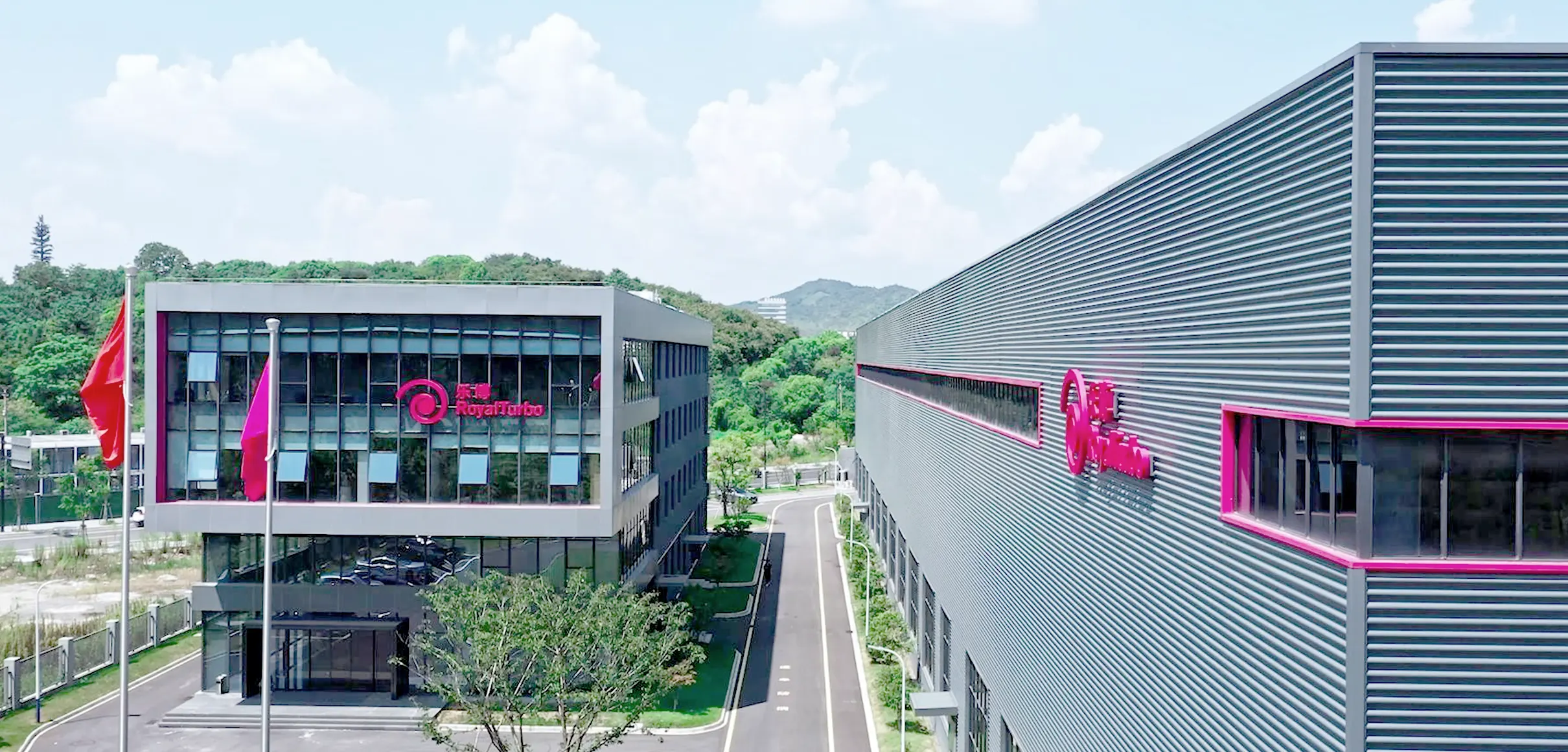 Then, in 2023 RoyalTurbo underwent their biggest visible growth spurt: a huge new assembly and maintenance workshop in Huzhou was set up and required branding and wayfinding. JungleFish developed a highly memorable façade design and a clear wayfinding system for the 30,000 sqm facility.