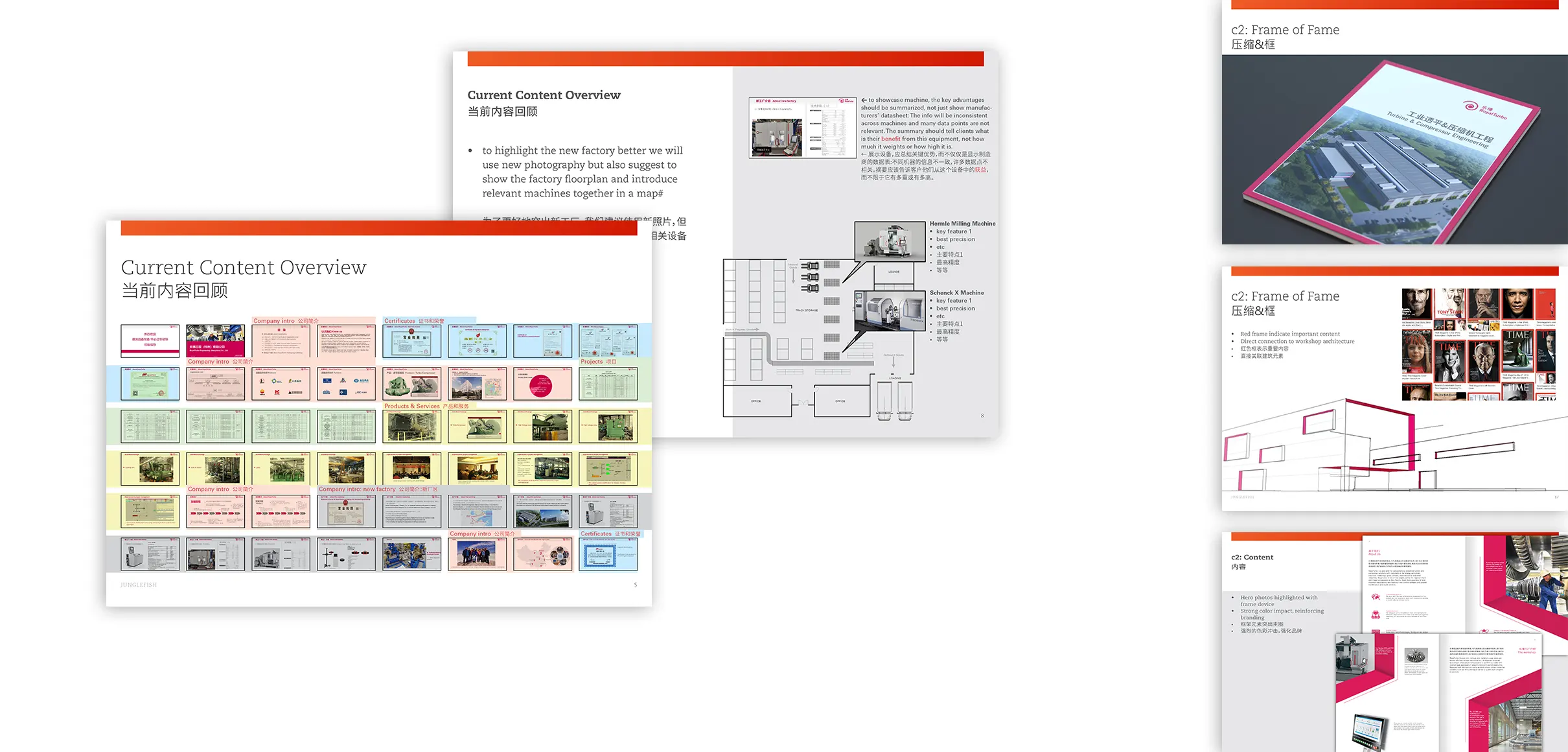 Once implemented by 2024, we needed to communicate these new capabilities and started the content and concept work for the new brochure, which would also serve as the content source for other media. Snooping through a large set of technical presentations and documents, we managed to boil down their new service scope and company profile to a compact 36-page brochure. Our activities included: